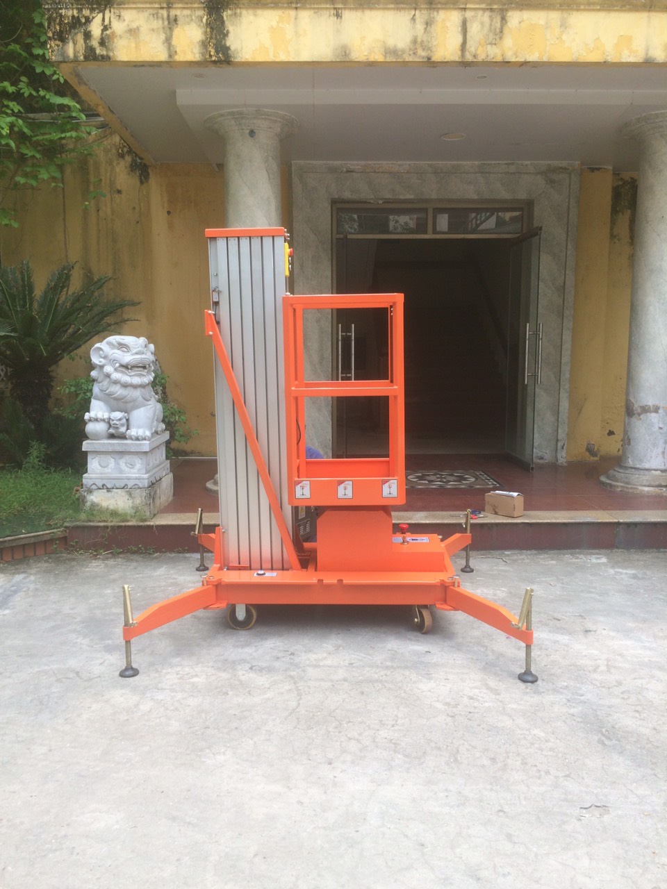 Chân chống phụ sẽ giúp cân bằng và ổn định thiết bị trên bề mặt không bằng phẳng. Điều này sẽ giúp giảm thiểu rủi ro bị lật khi nâng hạ sàn thao tác.