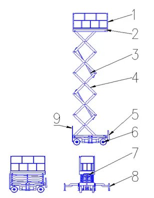 2. Cấu tạo chính của xe nâng cắt kéo: